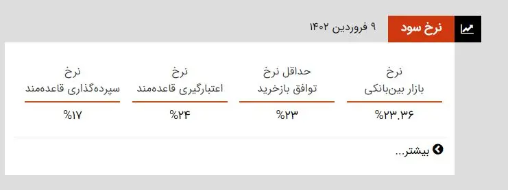 این در حالی است که پیش از این آخرین نرخ سود بین بانکی ثبت شده در سال گذشته ۲۳.۱۴ درصد بود که به هفته منتهی به ۲۴ اسفند ماه ۱۴۰۱ تعلق داشت.