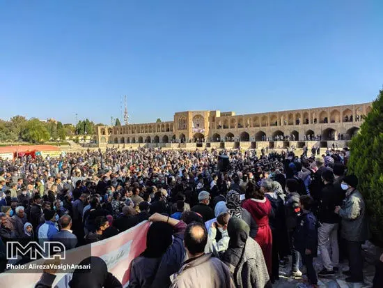 جمعی از مردم اصفهان با حضور بر بستر خشکیده زاینده‌رود و سردادن شعار، از کشاورزان حمایت کردند.