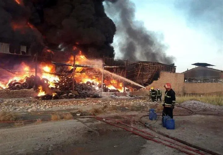 آتش سوزی مهیب در انبار ضایعات لاستیک در رباط‌کریم | دود غلیظ منطقه را فرا گرفت