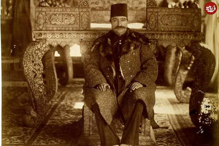 عکس یادگاری ناصرالدین شاه با مجسمه باشکوه‌اش