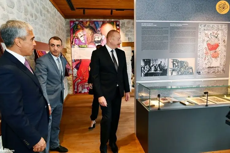 رئیس جمهور آذربایجان و بانوی اول این کشور همچنین در افتتاحیه نمایشگاهی از آثار میرمحسن نواب قرهباغی هنرمند برجسته اهل شوشا در محوطه مسجد برپا شده بود حضور یافتند.