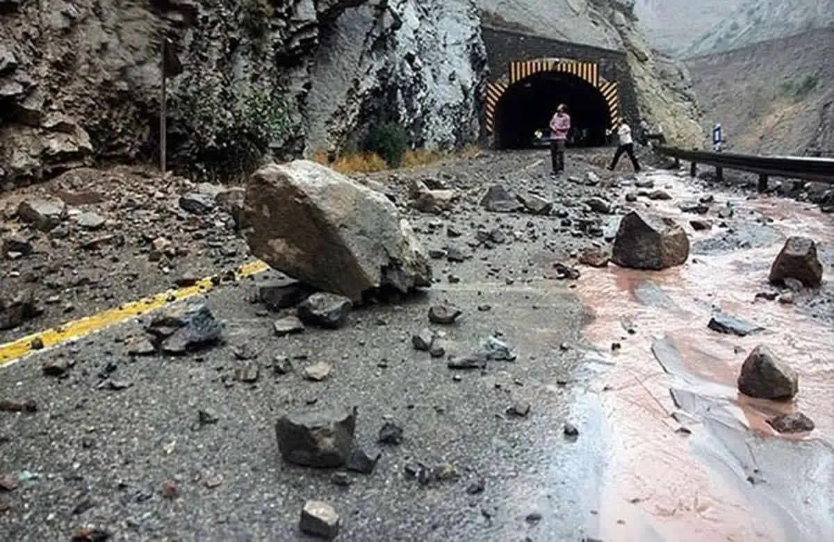 جاده چالوس به علت ریزش سنگ بسته شد.