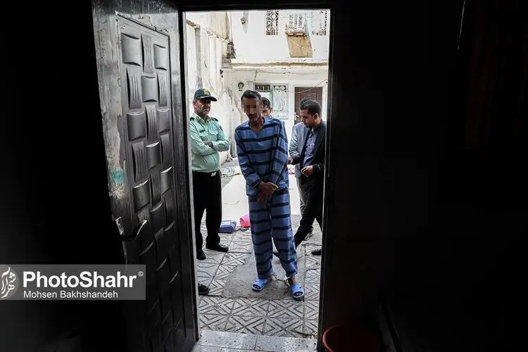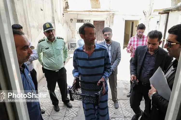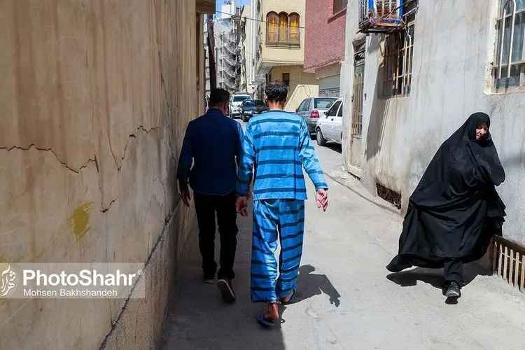 مردی جوانی که بر سر اختلافات مالی دوستش را با ضربات آسفالت خیابان به قتل رسانده بود با حضور قاضی صفری بازپرس ویژه قتل دادسرای ناحیه دو مشهد صحنه قتل را بازسازی کرد.عکاس: محسن بخشنده