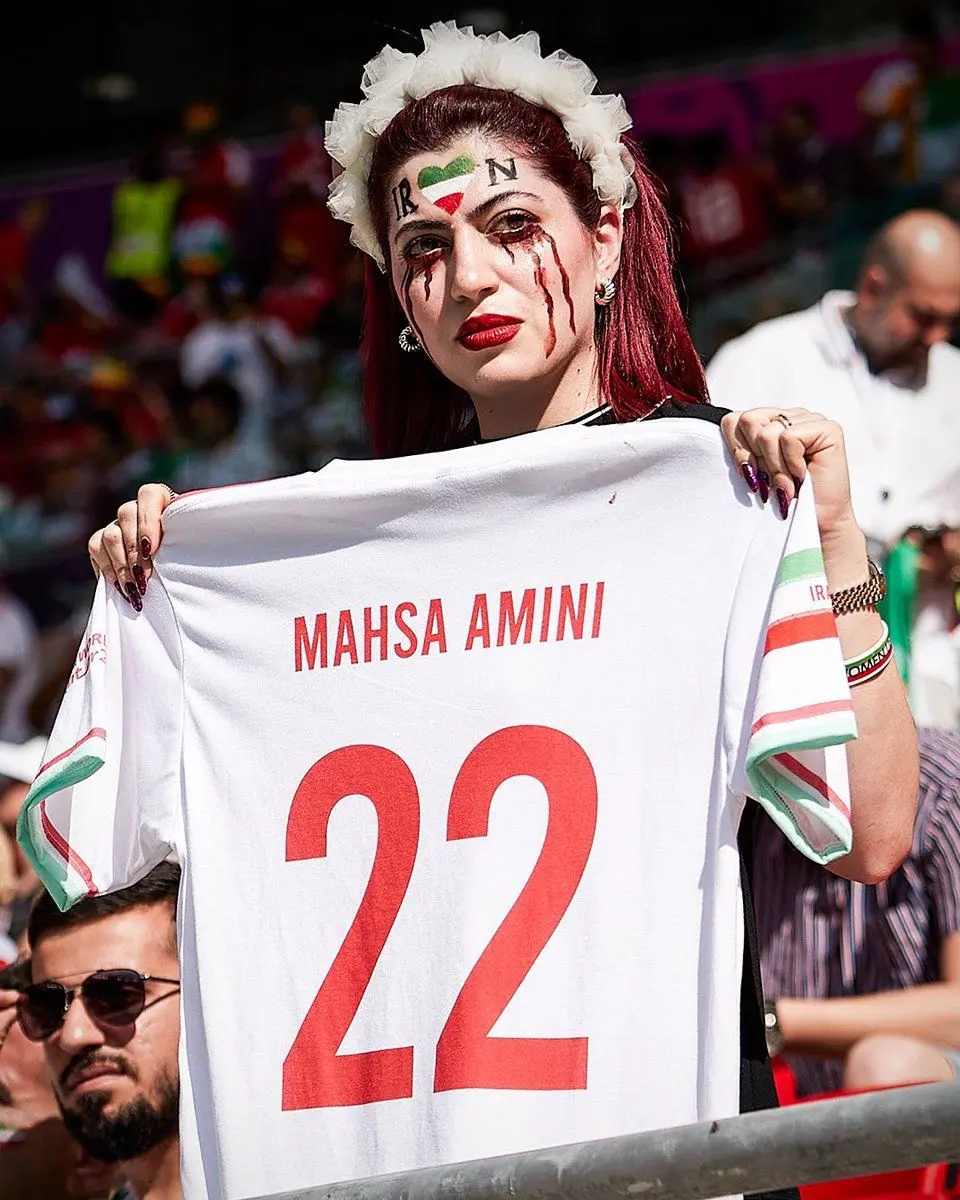 ضبط پیراهن «مهسا امینی» در بازی ایران-ولز