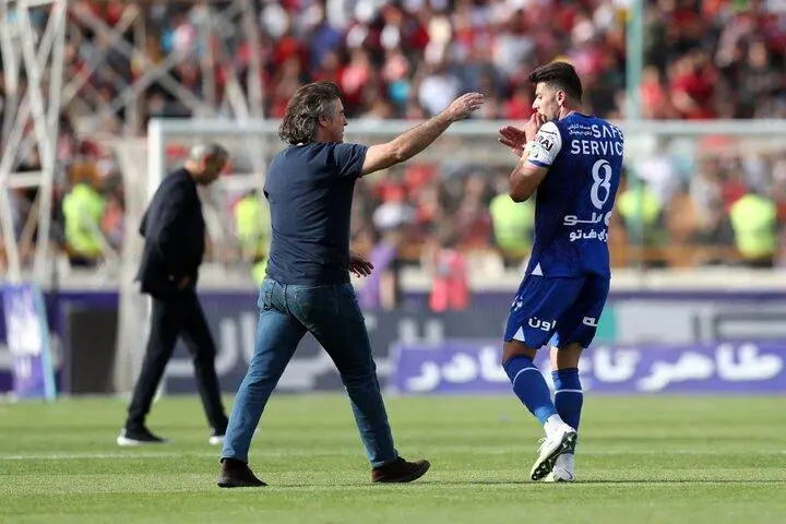 یکی از صحنههای عجیب بازی تیمهای استقلال و پرسپولیس در پایان این دیدار رقم خورد؛ جایی که ریکاردو ساپینتو سرمربی پرتغالی استقلال به سمت پیام حیدری و تیم داوری این مسابقه دوید و خطاب به آنها جملاتی را بر زبان آورد.